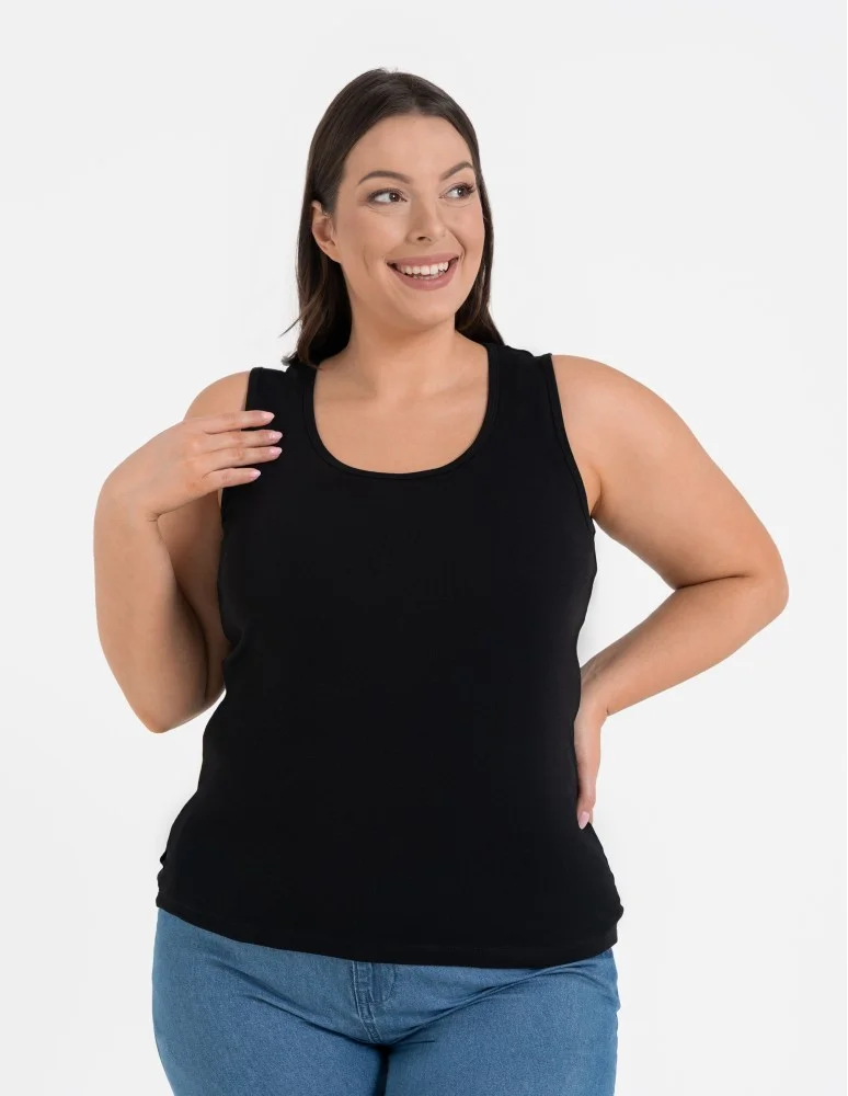 Koszulka damska na ramiączkach Tank-Top bawełniana Plus Size CZARNY