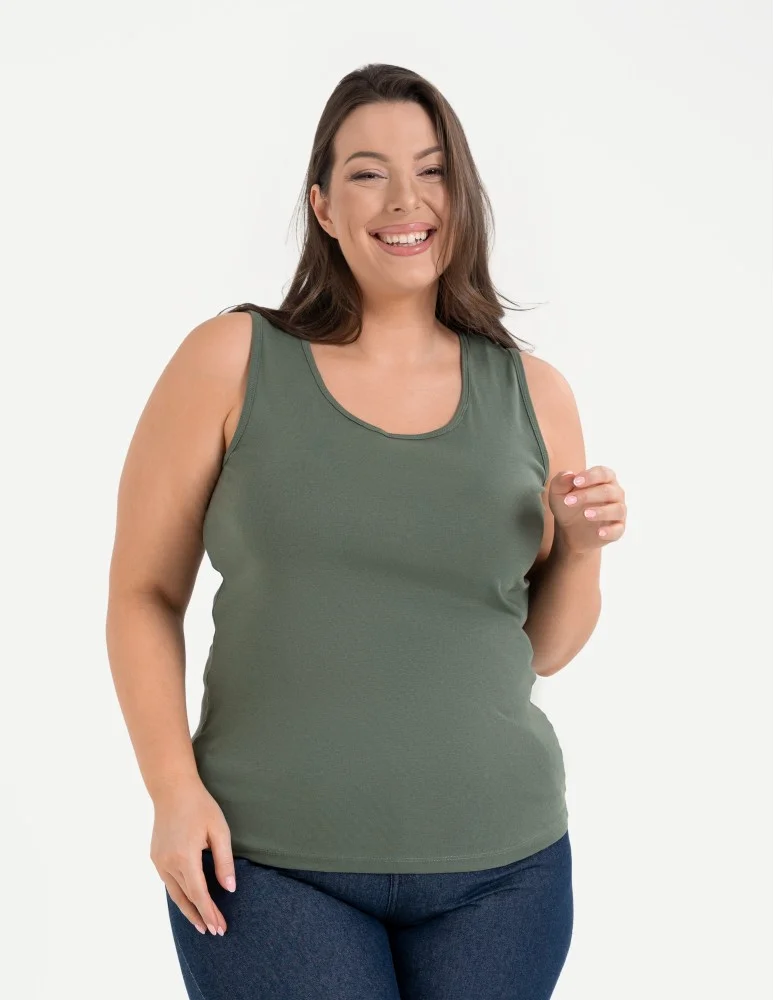 Koszulka damska na ramiączkach Tank-Top bawełniana Plus Size KHAKI