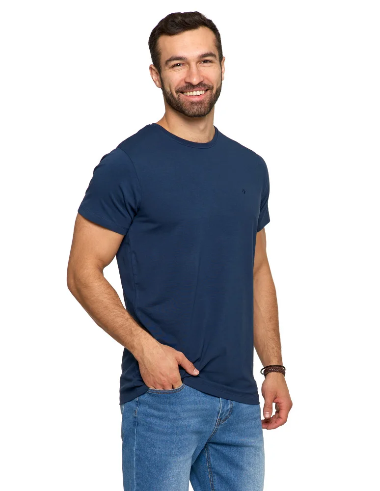 Koszulka męska T-shirt bawełniana Premium okrągły dekolt GRANATOWY
