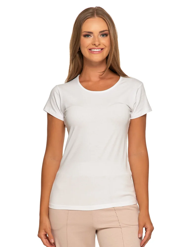 T-shirt damski bawełniany z krótkim rękawkiem jednokolorowy BIAŁY