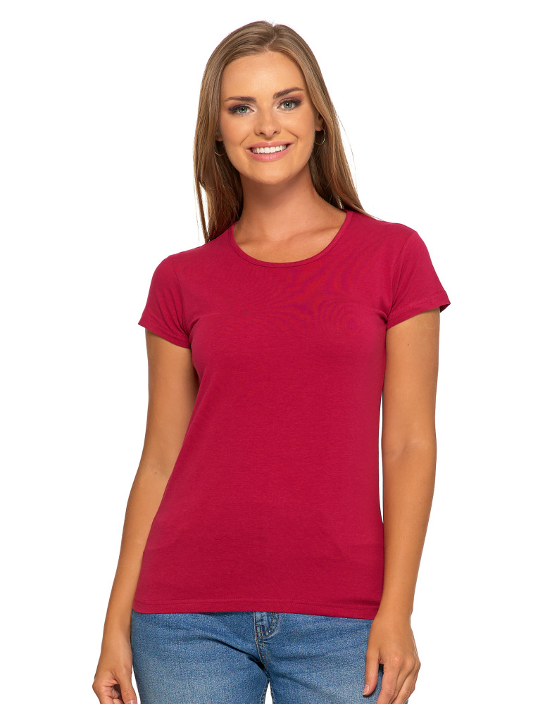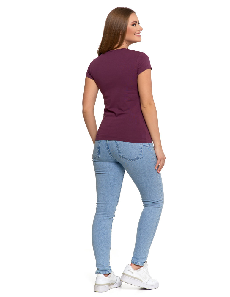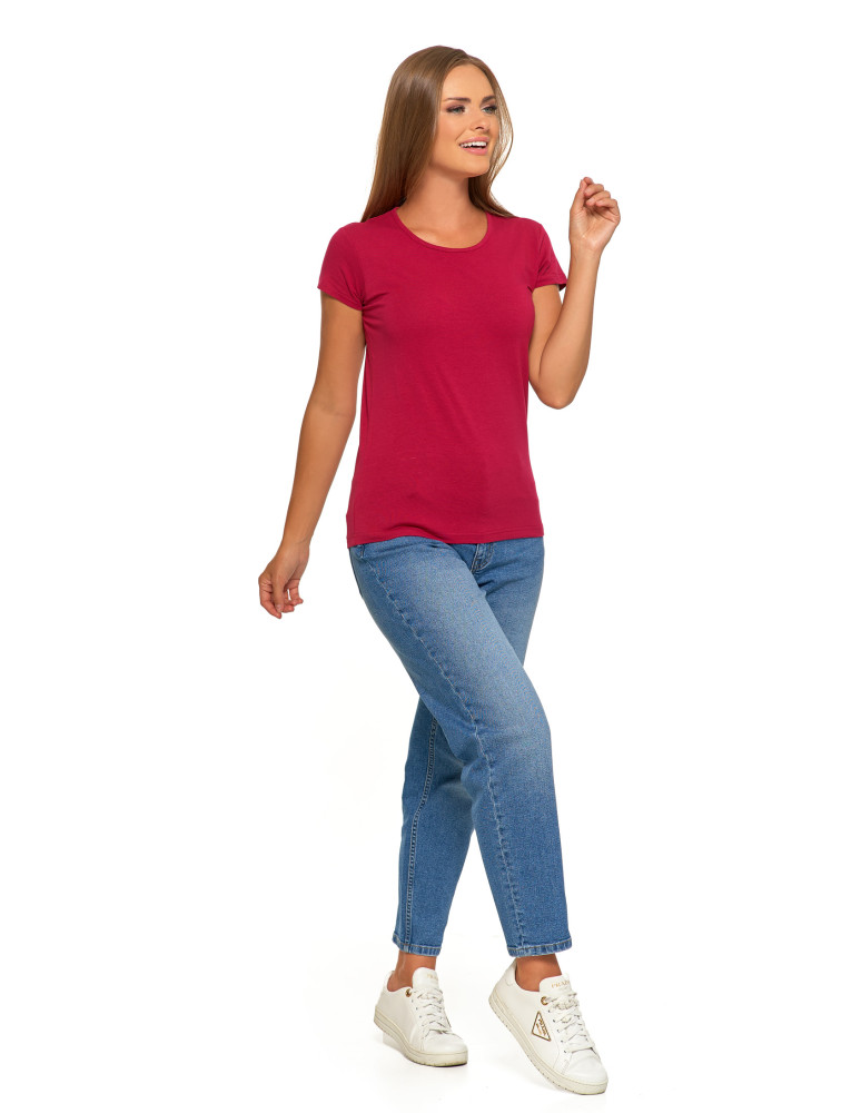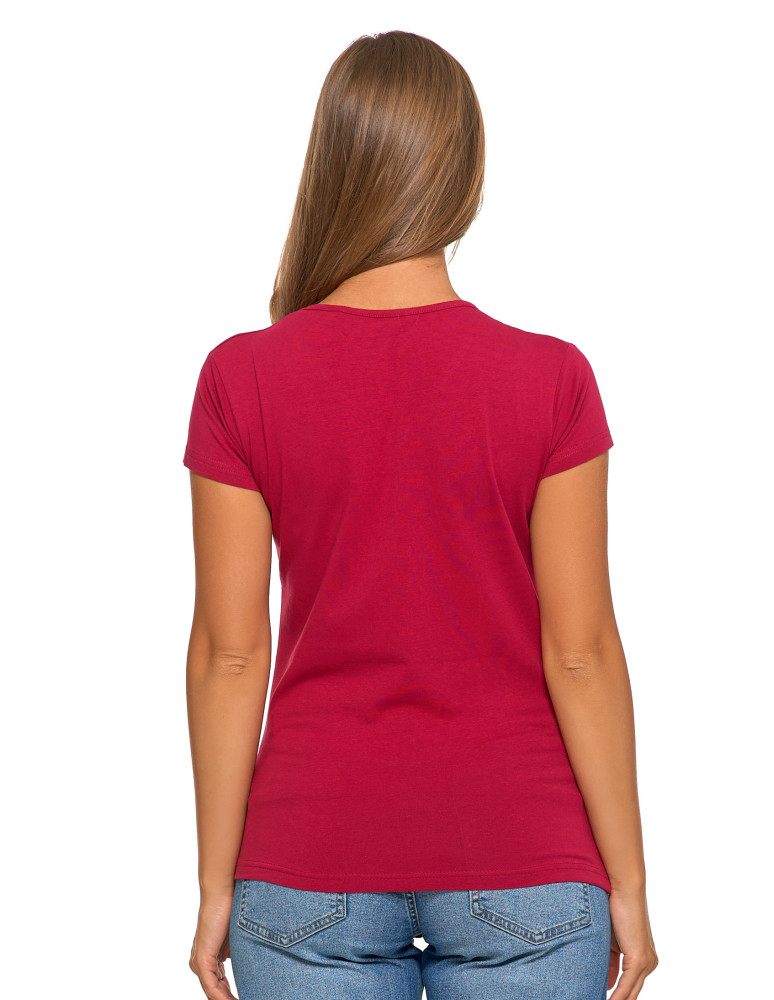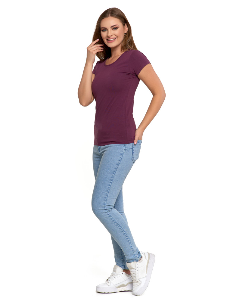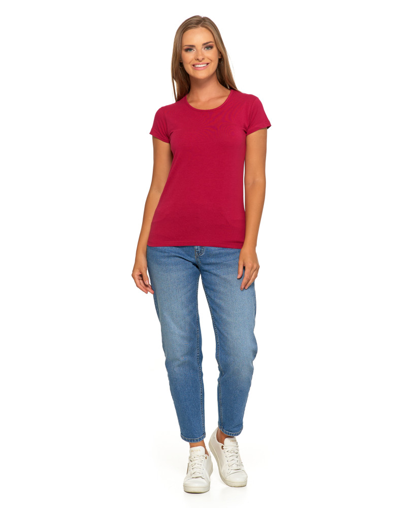 T-shirt damski bawełniany z krótkim rękawkiem jednokolorowy BORDOWY