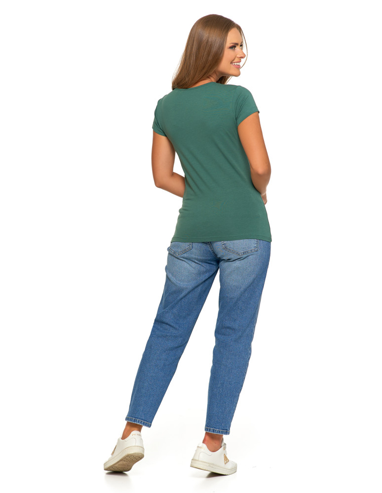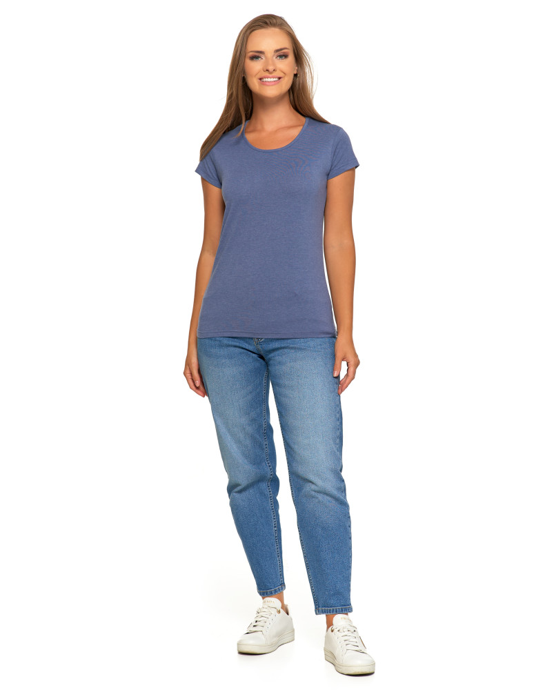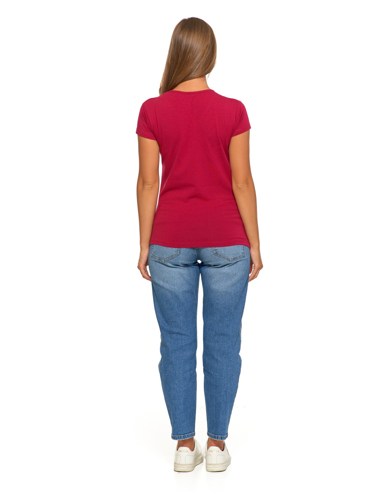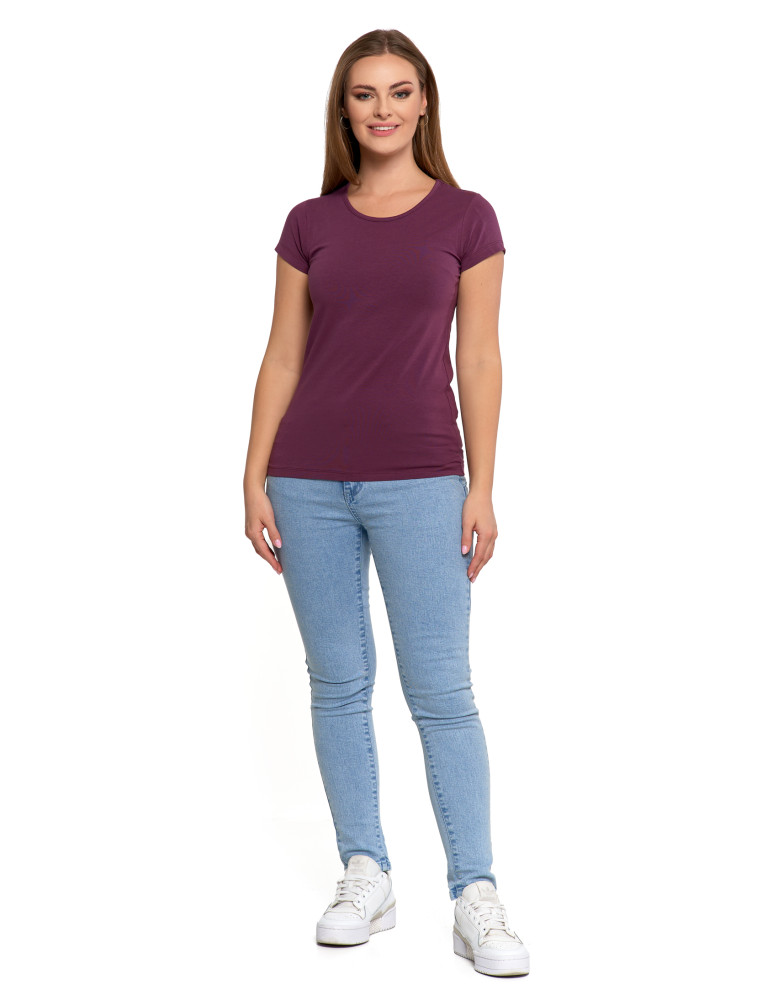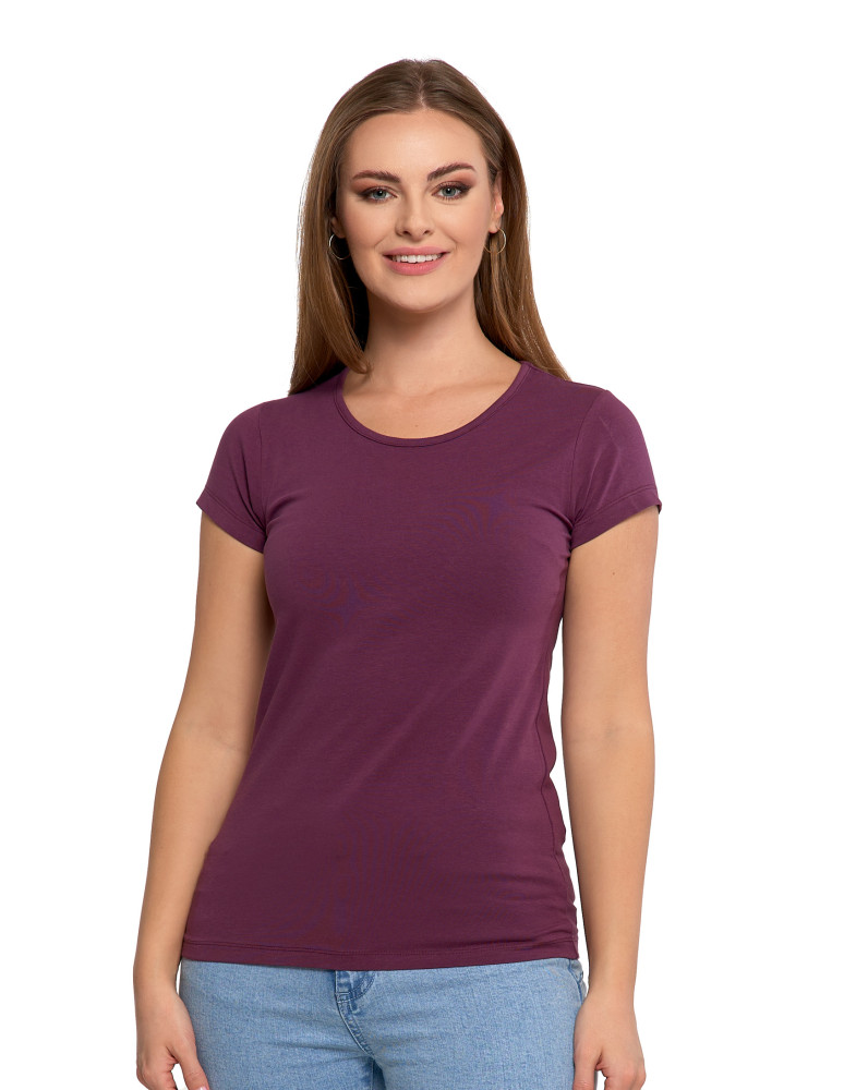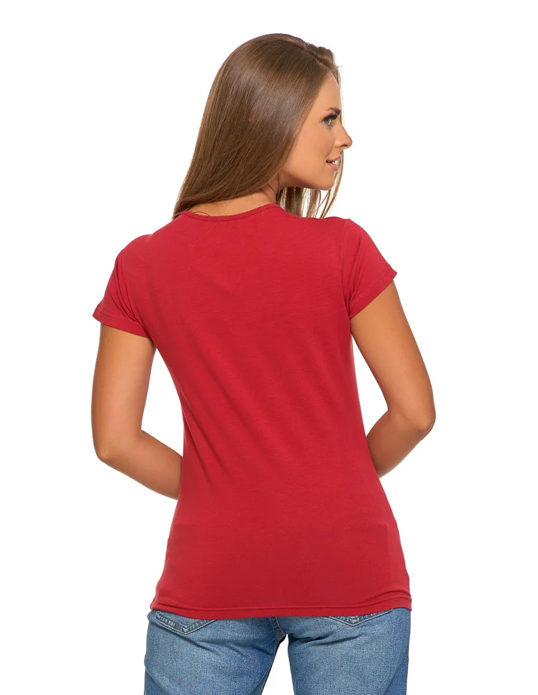 T-shirt damski bawełniany z krótkim rękawkiem jednokolorowy BORDOWY