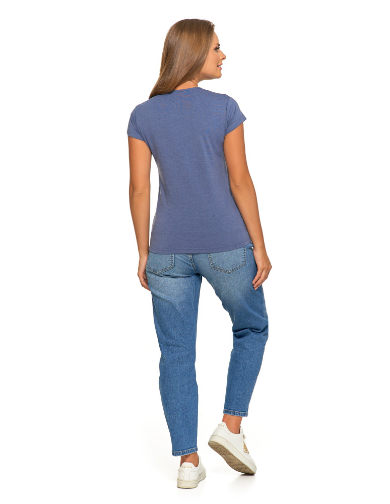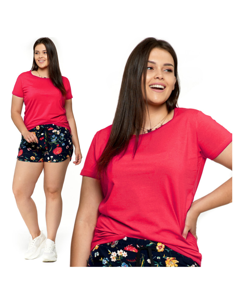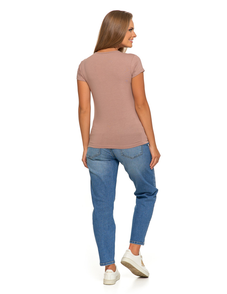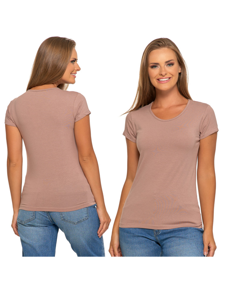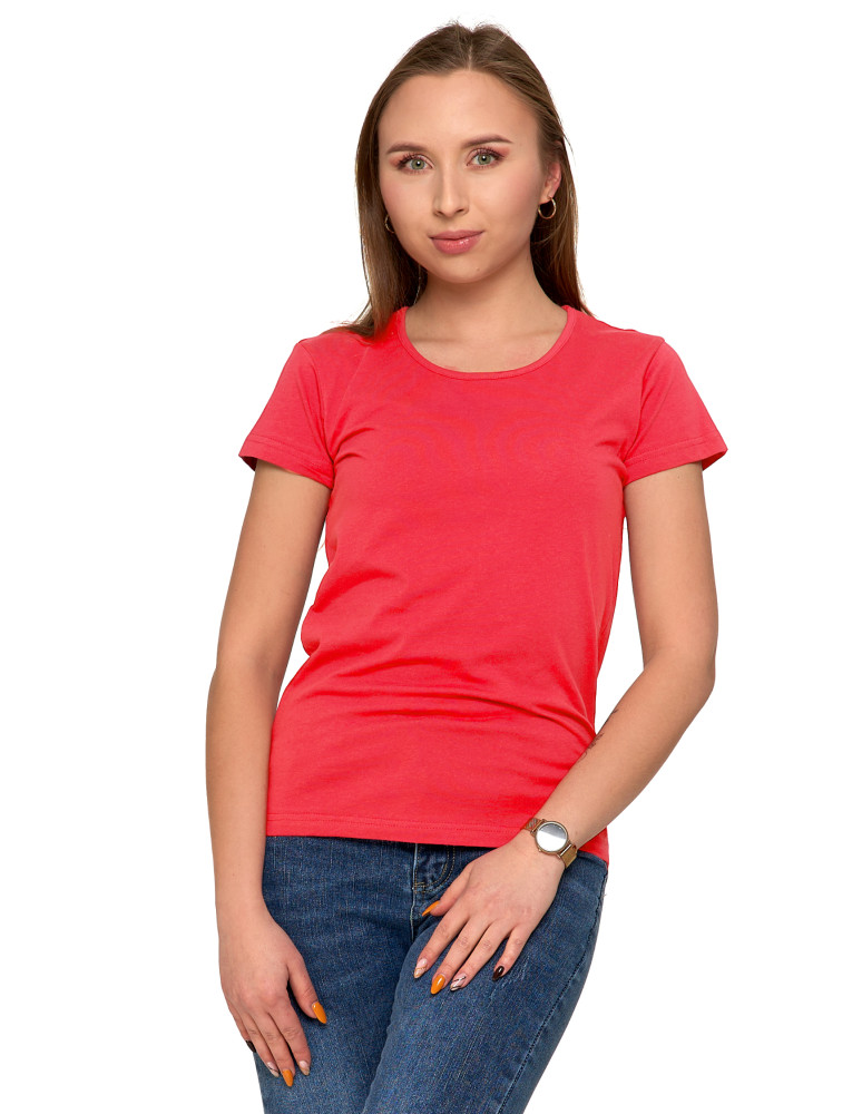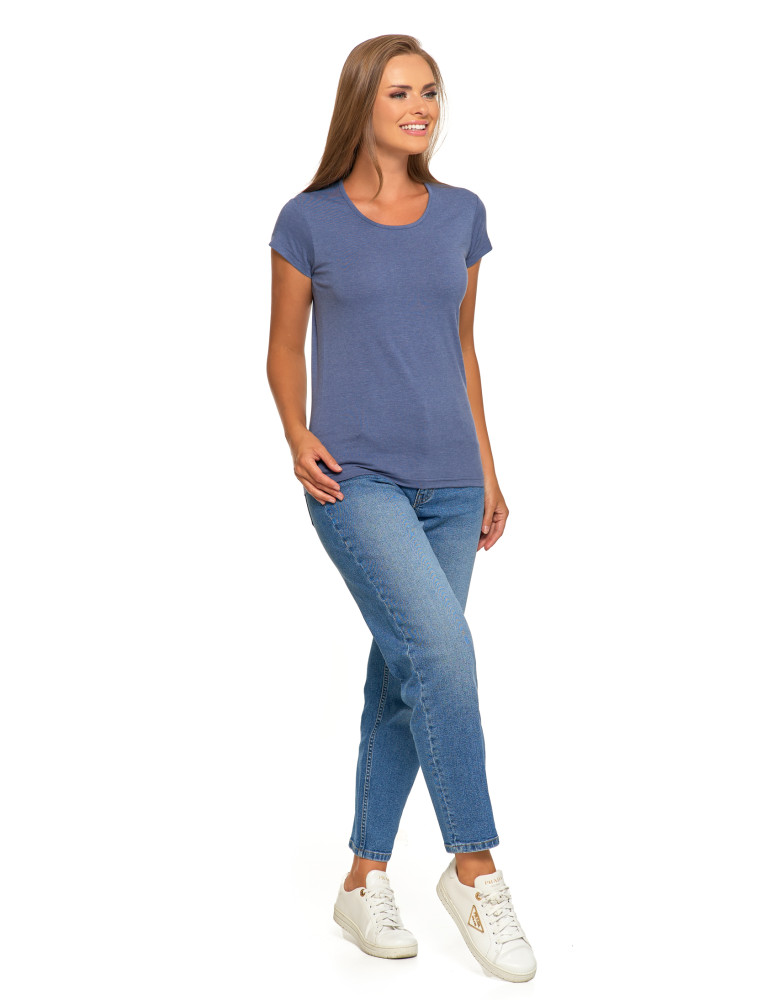 T-shirt damski bawełniany z krótkim rękawkiem jednokolorowy BORDOWY