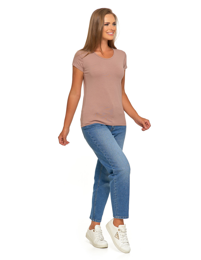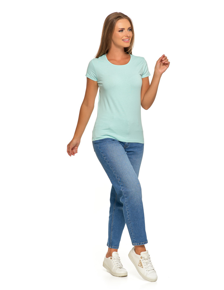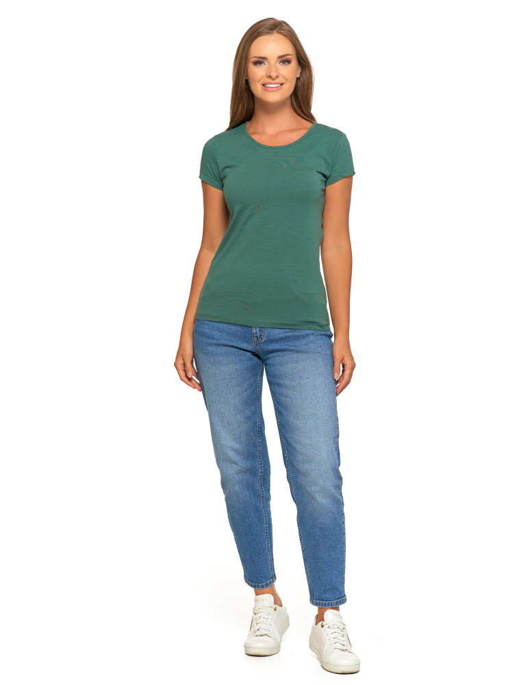 T-shirt damski bawełniany z krótkim rękawkiem jednokolorowy z kolekcji BASIC to idealna propozycja dla kobiet ceniących wygodę i prostotę. Wykonany z wysokiej jakości, miękkiej bawełny, zapewniającej wysoki komfort noszenia oraz dobry przepływ powietrza. Prosty, dopasowany SLIM FIT ale jednocześnie elegancki krój sprawia, że koszulka pasuje zarówno do codziennych, jak i bardziej formalnych stylizacji. Krótki rękawek nadaje koszulce lekkości i swobody ruchów, co jest szczególnie ważne w upalne dni. Klasyczny dekolt okrągły pozwala na swobodne dopasowanie dodatków, jak chusty czy naszyjniki. T-shirt damski bawełniany z krótkim rękawkiem jednokolorowy to ponadczasowa propozycja, która z pewnością znajdzie swoje miejsce w szafie każdej kobiety.