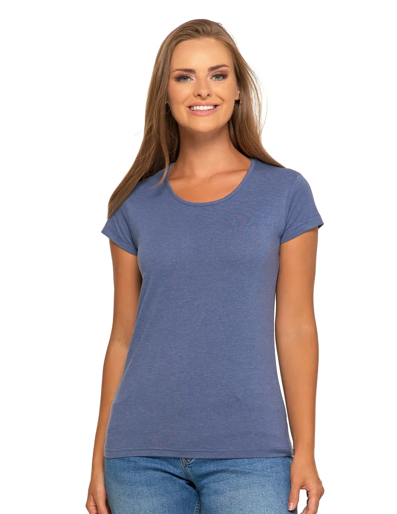 T-shirt damski bawełniany z krótkim rękawkiem jednokolorowy CIEMNY NIEBIESKI