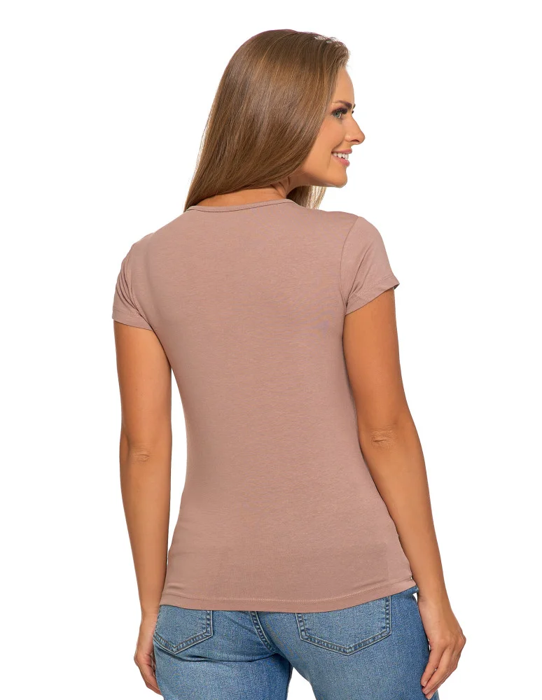 T-shirt damski bawełniany z krótkim rękawkiem jednokolorowy MOKKA