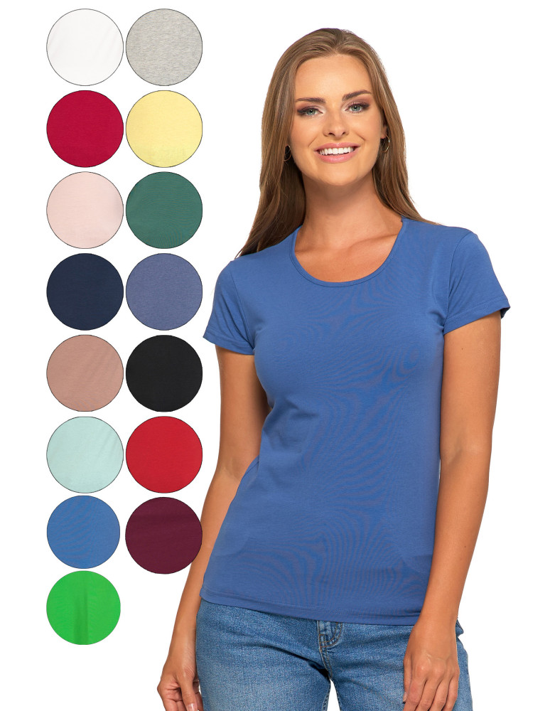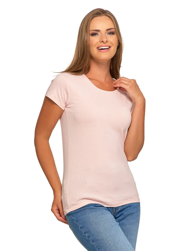 T-shirt damski bawełniany z krótkim rękawkiem jednokolorowy RÓŻOWY
