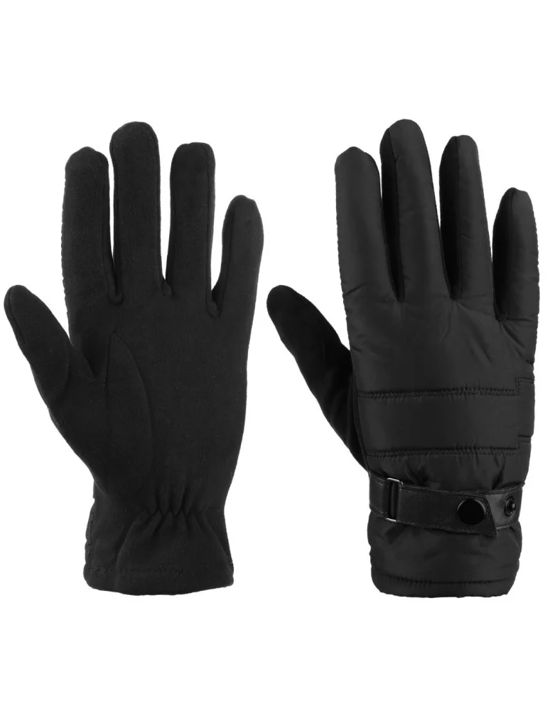 Rękawiczki męskie ocieplane z regulowanym paskiem CZARNY
