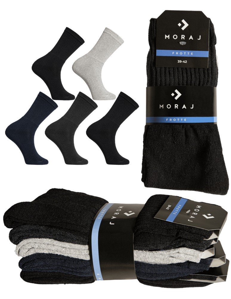 Skarpety męskie frotte zostały wykonane z najwyższą starannością i precyzją.Dobór bawełny oraz odpowiednich dodatków uszlachetniających sprawia, iż cechuje je doskonała jakość i trwałość zapewniająca komfort użytkowania.Idealnie nadają się dla osób uprawiających aktywny styl życia jak i dla tych którzy cenią sobie wysoką jakość skarpet. Sprawdzą się zarówno w jesienne jak i zimowe dni.