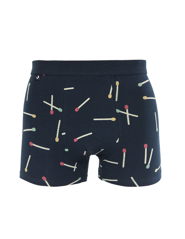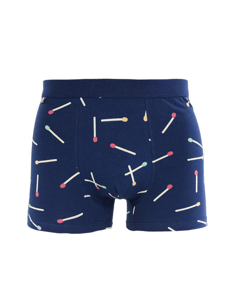 Bokserki męskie bawełniane zabawny wzór zapałki GRANATOWY