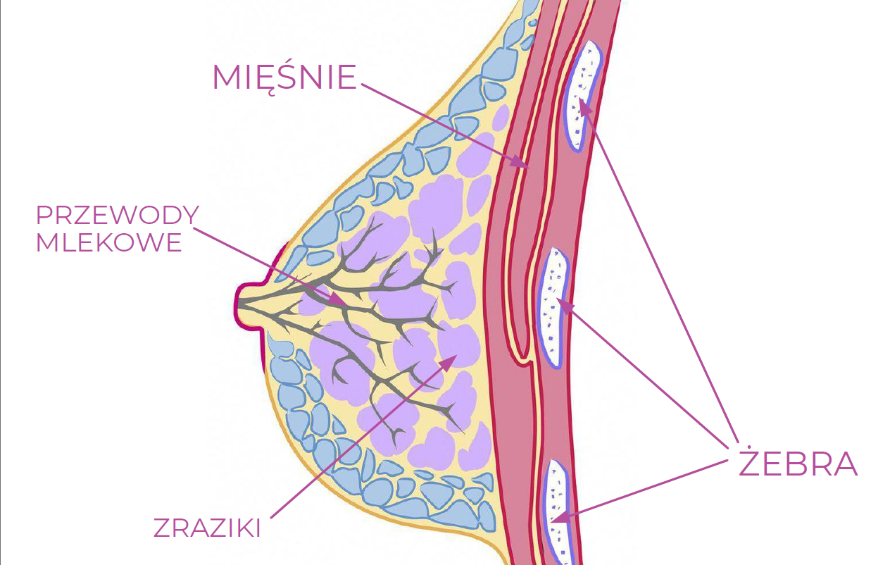 Poniższa grafika przedstawia przekrój boczny piersi: